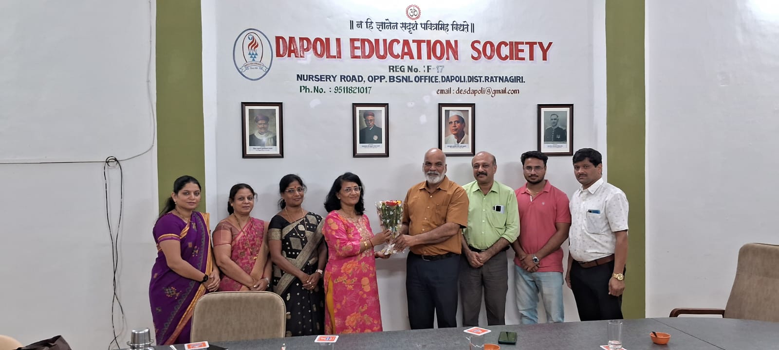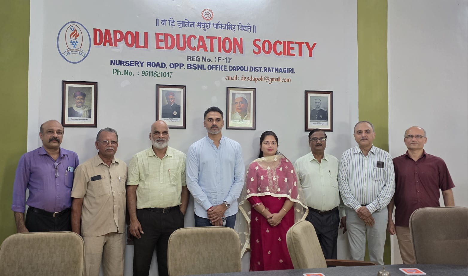 Visits Visits to Dapoli Education Society by Dignitaries सातारा सैनिक स्कूलच्या उपप्राचार्या लेफ्टनंट कर्नल मनिषा मॅडम, नवोदय विद्यालय राजापूरचे मा. प्राचार्यरोटरी क्लब पुणे हेरिटेजचे माननीय सदस्यसंस्थेचे अध्यक्ष मा मुकुंदराव चितळे साहेबजिप रत्नागिरी चे माध्यमिक शिक्षणाधिकारी मा आंबेकर साहेबमिबा ड्राईव्हटेक इंडिया प्रा.लि पुणे चे संस्थापक मा. सतिश बर्वेजिप रत्नागिरी च्या माध्यमिक शिक्षणाधिकारी मा. सुवर्णा सावंत मॅडमजिप रत्नागिरी चे माध्यमिक शिक्षणाधिकारी मा. सुवर्णा सावंत मॅडम, उपशिक्षणाधिकारी श्री. गावंड साहेब, श्री. चौधरी साहेब व इतर कर्मचारी वर्गमा. नामदार योगेशदादा कदम, आमदार - दापोली, खेड, मंडणगड मतदारसंघ, राज्यमंत्री महाराष्ट्र राज्य, दापोली नगरपंचायत दापोलीच्या नगराध्यक्षा मा.सौ. कृपा घाग मॅडम